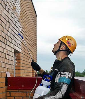 Мойка, уборка фасадов и удаление стойких загрязнений на высоте без лестниц осуществляется только промышленными альпинистами. Альпинизм – это задача для квалифицированных специалистов, имеющих допуск для работы на высоте. Они умеют пользоваться системами креплений и готовы к внештатным ситуациям. Категорически запрещено выполнять работы по мойке, уборке фасадов на высоте силами других специалистов. Это обусловлено необходимостью соблюдения техники безопасности. Если пренебречь промышленными альпинистами, то это чревато определенными последствиями: